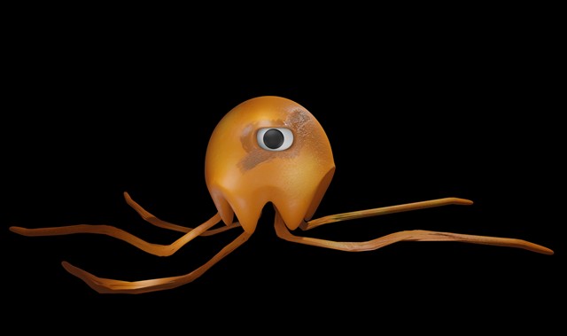 毒刺弗林是一只橙色水母,一只眼睛位于钟形头部的中间,与 6 根可伸缩的触手相连。他的四根触手向下,另外两根则以友好的姿势举起在他的头部两侧。