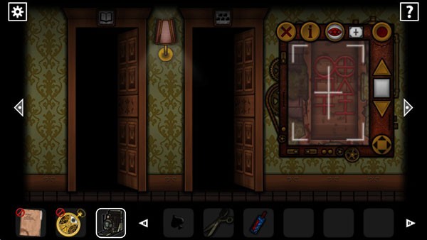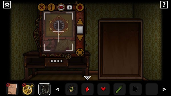 这时返回二图的图书馆,右图中点中间的暗门,把手上的书全塞进去了,然后根据纸条上的图案把书的顺序排好,下面秘密通道开启,进去里面是家族所有人的照片,能在右边获得里世界照相机(答应我不要看各个角落的里世界),用照相机看墙上的密码画,能得到真正的保险箱密码图案,打开保险箱获得剪刀和黑桃。