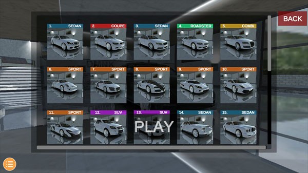 2、点击左上角Car selection 可以选择喜欢的车辆。