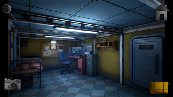 1、主角戴维·赞德从桌上醒来,发现电力中断。查看右侧墙壁,找到相机和背包。