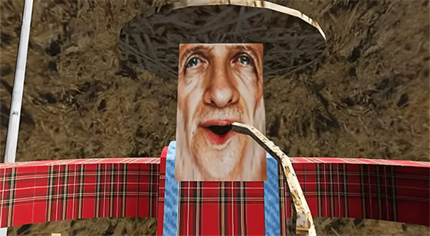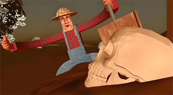 4、游戏中设置多结局,靠近农夫触发挖掘机腌萝卜场景,而收集5个瓶子后触发围攻结局。