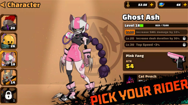 3、收集角色,升级摩托,提升速度、武器和个性,成为最强猎人。