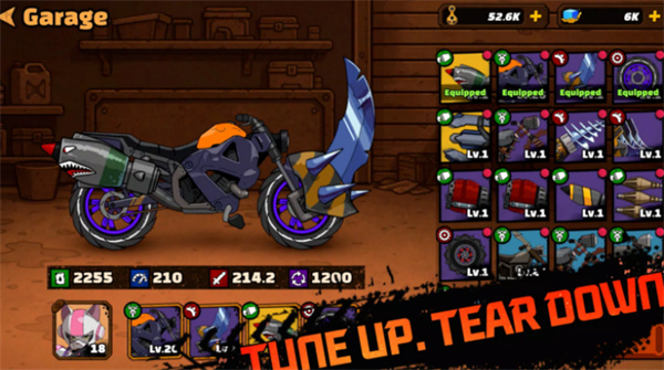 2、丰富的角色收集与机车部件系统,打造专属战车。