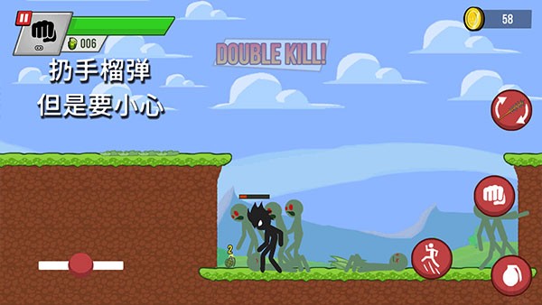 经典火柴人形象超亲切,战斗超刺激,拳拳到肉,武器道具丰富,能随心搭配,应对各种奇葩僵尸,关卡多样,从阴森墓地到废弃工厂,场景超带感,难度递增超上头,合理利用武器通过关卡!