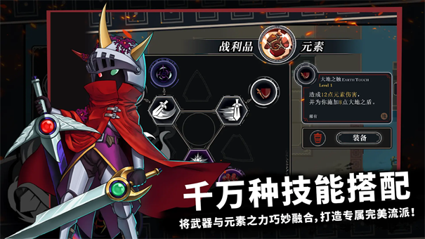 2、千万种技能搭配:将武器与元素之力巧妙融合,打造专属完美流派。