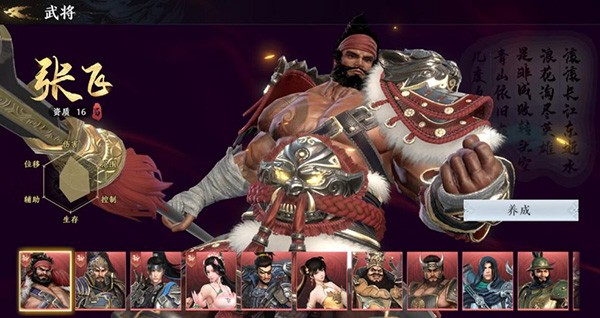 张飞的被动技能【狂暴之力】可以使张飞生命低于40%时进入狂暴状态,获得8%的伤害加成和受伤减免效果,并且每额外再次降低10%生命,会继续附加2%的伤害加成及受伤减免效果,在较低生命值的情况下其作战能力会极大增强。张飞的无双技【毁天灭地】,可凭借其大攻击范围,高伤害,快速起手的特点来快速清理周围敌人,作为副将使用时效果奇佳。