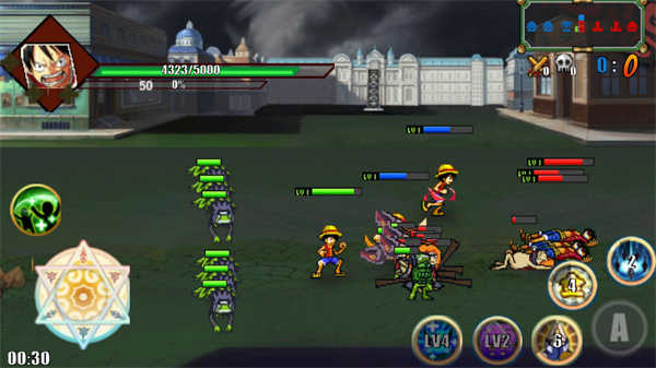 1、能体验到流畅的动作感受、各种海贼王角色可解锁、丰富阵容选择;