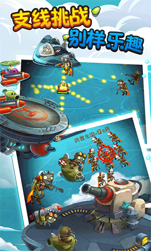 植物大战僵尸2天空之城游戏是一款非常好玩的即时战略的模拟塔防游戏,在这款游戏之中你将会体验到从地面上升到天空的游戏体验,游戏之中的前情故事以及植物故事也都相当的精彩。植物大战僵尸2天空之城游戏之中的僵尸博士将会再次回来,乘坐机械战鹰来和你展开一系列的战斗,不通用的僵尸也将会在控驾驶天空战机,你需要通过独特的太空植物和这些僵尸作战,翱翔于天空之上保卫自己的房屋。