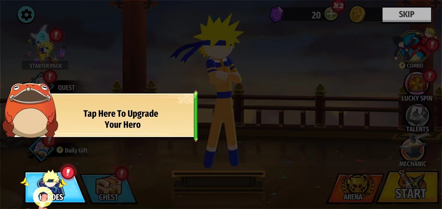 1、用适合的武器击败挡在你面前的所有对手,升级自己的忍者从而获得更强大的力量。