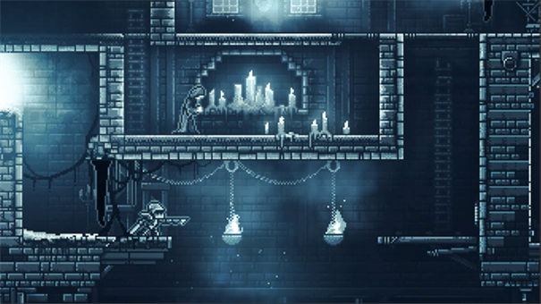 12、爬上吊灯右边的平台,柱子会断裂,把之前推断的柱子推过来修复平台,从平台往左跳过去,获得钥匙。