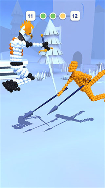 点击进攻后,小人会拿着武器用摆好的姿势与对方决斗,武器越早碰到对方的一方获得游戏的胜利!