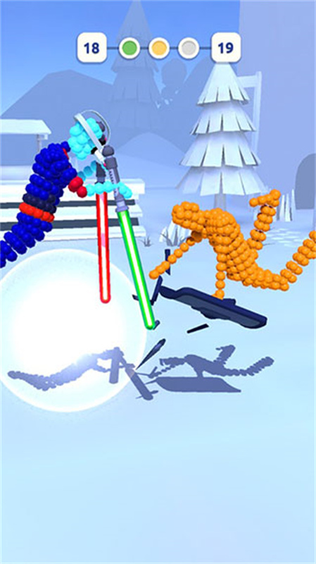 打不过我吧是一款趣味十足的动作格斗类手机游戏,支持单人和AI对决与双人联机对决两种玩法,玩家将在战斗中操作由一个又一个圆球组成的小人,通关调整关节来进行移动与攻击,挥舞手中的武器格挡并击打对手,将组成对手的圆球打落拆散并让对手失去行动能力即可赢得对决的胜利。打不过我吧提供了多款极具中世纪风格的武器装备,从钉头锤、剑盾到长刀、钩镰应有尽有,根据不同武器的灵活程度与攻击范围挑选出最适合自己的武器,是玩家在战斗中取胜的关键。喜欢打不过我吧的小伙伴们赶紧下载体验吧!
