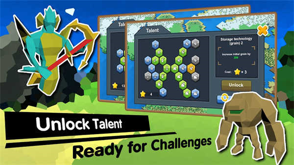 不同的种族拥有各自的种族技能,有坚强的护盾,有锋利的长矛!每个种族还有各自的天赋系统,每个种族有25种天赋技能让你自行定制,随着游戏的推进获得天赋点数,加强自己的部队吧