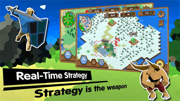 你可以建造伐木场、农田、兵营,获得木材、粮食、士兵数,木材用于建造升级,粮食用于产出士兵,兵营用于训练士兵,所以这就需要玩家在这三种建筑和资源中相互权衡,以此达到最优的策略方针