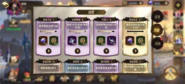 2、新手期活动很多,可以获得大量的所需材料,一般都是有红点,跟着红点走就行了。各系统都有相关的进度奖励,任务和成就都可以获得各类道具。