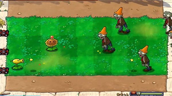 3、前面几关比较简单,消耗阳光就能种植植物,击败僵尸就能通关。