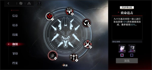 技能的升级需要用到对应阵营的模组,可在材料副本“锈河”-污染之巢获得。