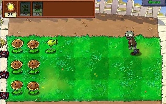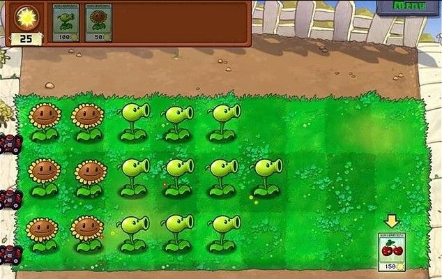 还是没什么难度,先沉住气,别管僵尸。一口气放上6个向日葵。然后补豌豆射手即可,有钱就补豌豆射手,后面不需要向日葵了。