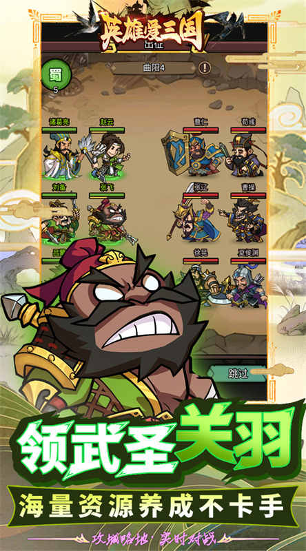 在游戏中,玩家将能够召集并培养各个时期的三国英雄。从刘备、曹操到孙权,每位英雄都有独特的技能和属性。携手英雄,组建属于你的最强三国阵容。