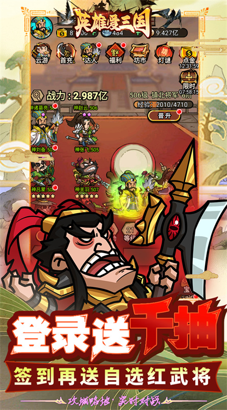 5、带兵打仗:没有带兵也能叫三国,在这里你可以指挥千军万马!随着等级和能力提升,带兵的数量和能力也会随着提升!