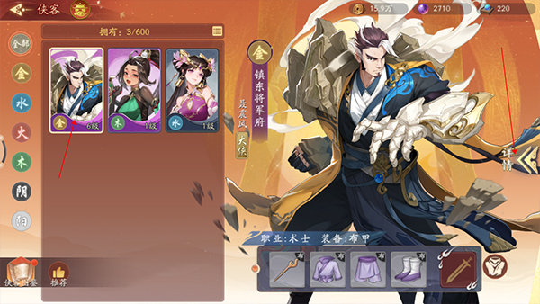 2、进入到所有侠客列表页面,点击需要升级的侠客,再点击页面右侧的“详情”按钮;