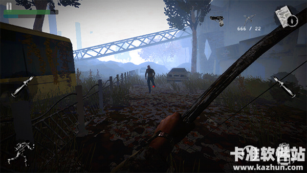 7、遇到丧尸将其击杀,后面跟着地图来闯关就行。