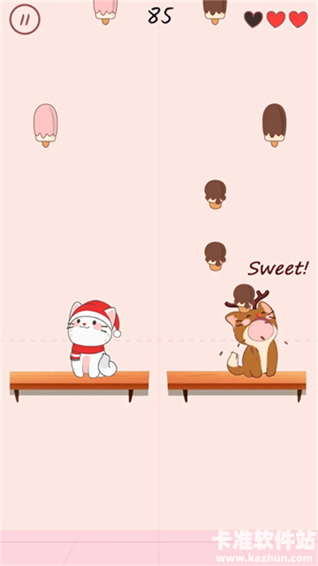 2、控制猫咪接住上方掉落的冰淇淋以获取得分
