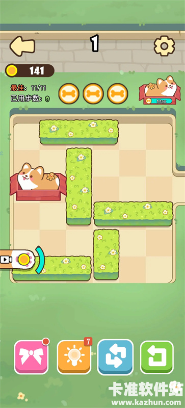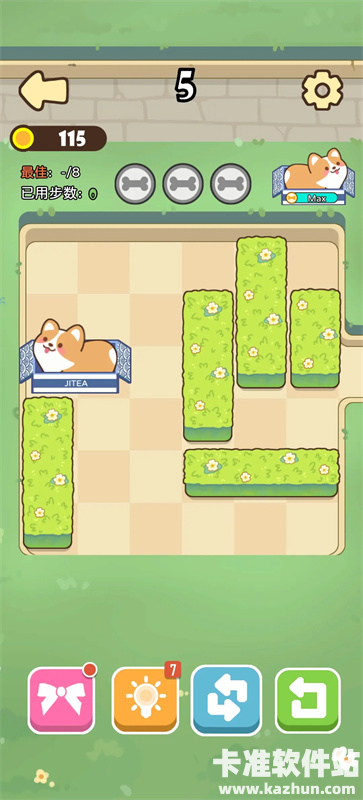 2、你的小狗被困在了花园之中,尝试移动场上的花丛,让你的小狗从花园中被拯救出来吧!
