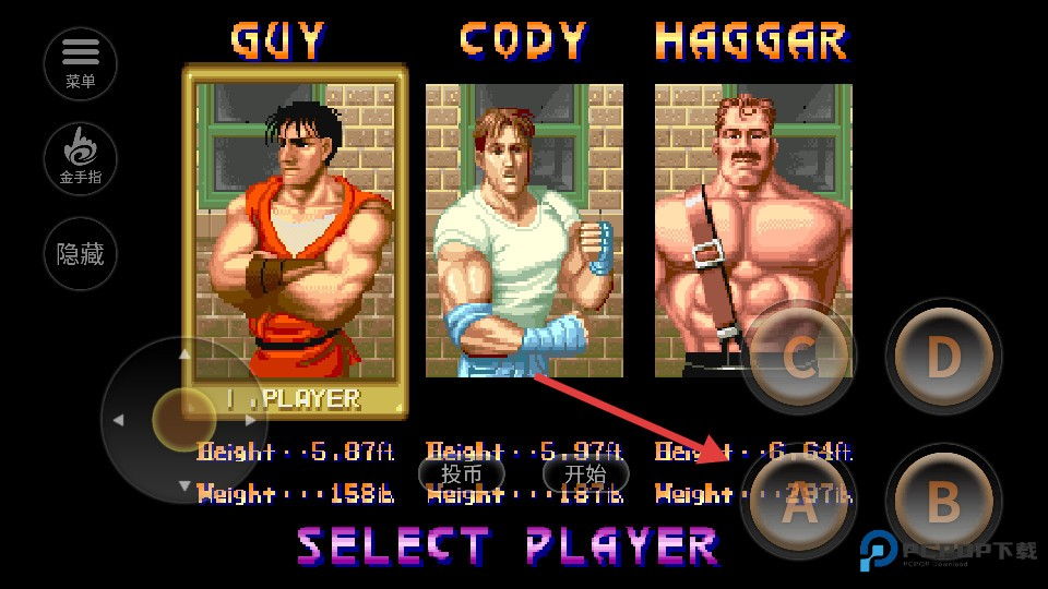 游戏中共有三位角色,分别为白色的科迪、红色的凯以及大力士哈格,除了通用技能外,还有各自的特色技能。