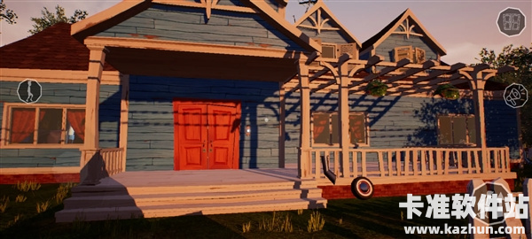 4、进入游戏,来到邻居门口,不能被他发现,抓到,追逐玩法非常之刺激,欢迎大家尝试!