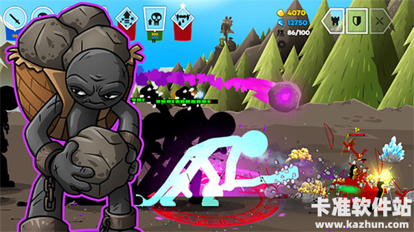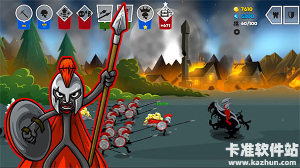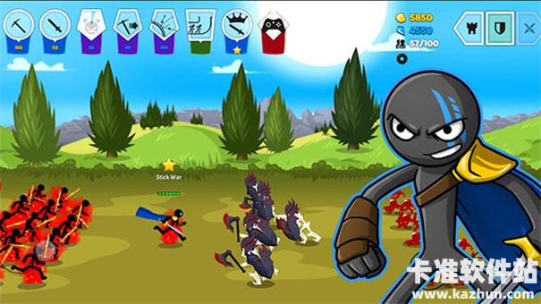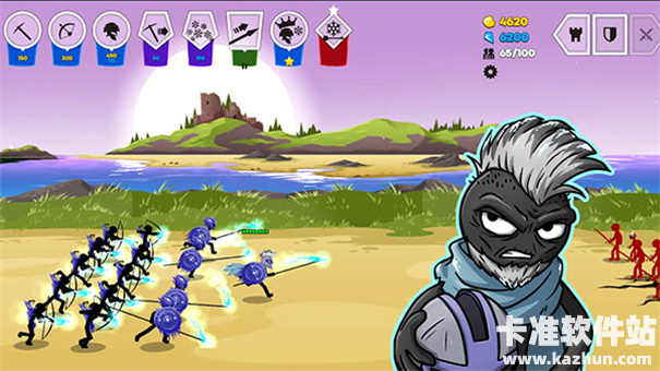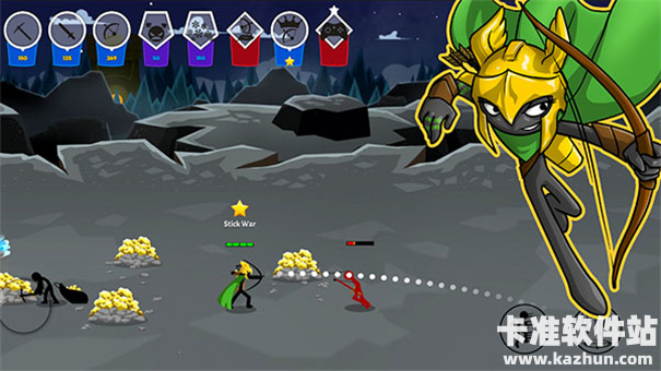 4、利用个性化的皮肤工具提高火柴人的能力,分配金币,合理的分配火柴人,将会更好的取得胜利。
