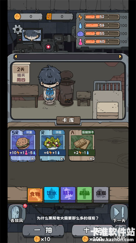 2、如果要想出狱,则需要在100天之内抽到100张SSR卡,但抽卡牌需要使用金币,而金币只有在新的一天开始后才会获得。