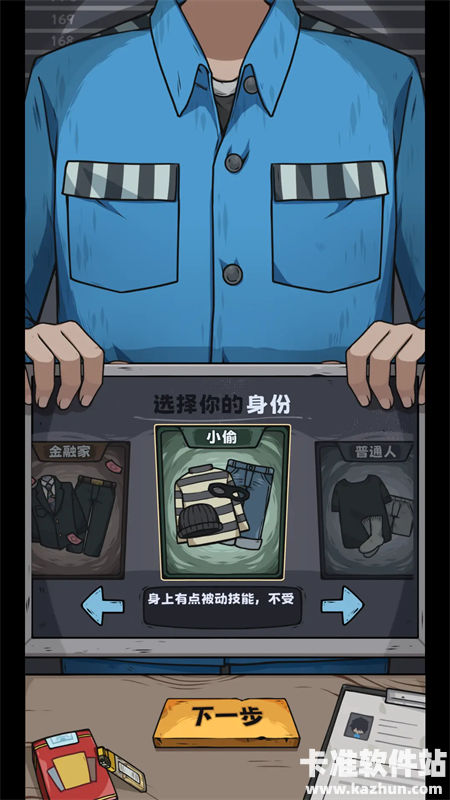 1、进入游戏,先选择适合自己的身份,共有金融家、普通人、小偷等。
