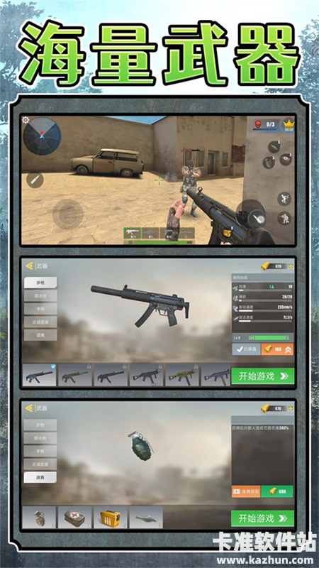 2、武器系统丰富多样,玩家可在战场收集或组装各类枪械装备,以适应不同作战需求。狙击步枪允许远距离精准打击。