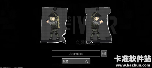 1、游戏启动后,进入角色创建界面,玩家可选择两个不同外观的像素风格角色(一男一女),输入自定义用户名,并点击“创建”按钮开始游戏。