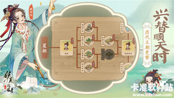 -每个朝代都有自己的独特经营玩法,如:东周末年的书院经营玩法--诸子百家,大汉的丝绸之路,明朝的郑和下西洋等……