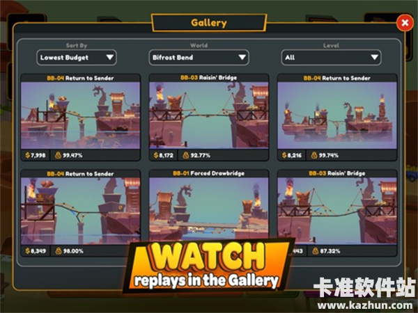 全界面精准汉化无理解障碍,真实的物理引擎还原真实造桥力学,有限预算下的结构设计超考验策略,上百道特色关卡和沙盒自由创作,还能分享闯关设计,造桥的成就感超棒,体验真实的搭桥乐趣!