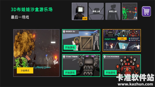 1、打开游戏,可看到提供有沙盒模式、【SKIBIDI DJ】、【TITAN TVMAN】和【TITAN SPEAKERMAN】四种游戏模式可选择,