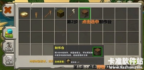 2、制作台是合成道具的必备之物,几乎所有的道具都是通过这里制作的。所以,咱们先要来做一个制作台。