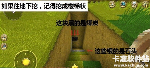 5、石头遍地都是,只不过有时候会被沙子、泥土、冰块、雪块覆盖住基本上,无论在什么地形,只要向下挖,就会挖到石头,记得挖成楼梯状,因为你还要再上来。