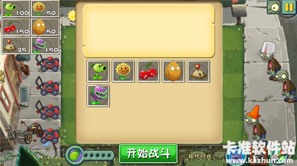 1、首先选择好植物,比如坚果、向日葵、大嘴花等,然后点击开始战斗。