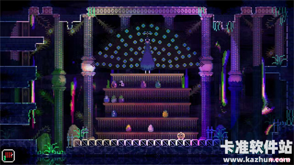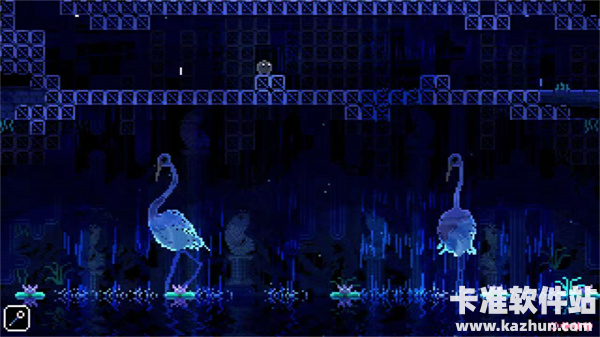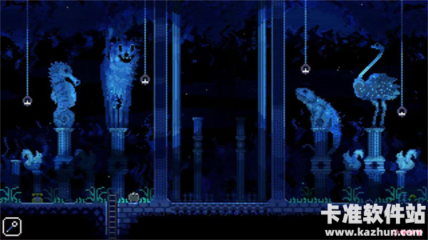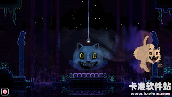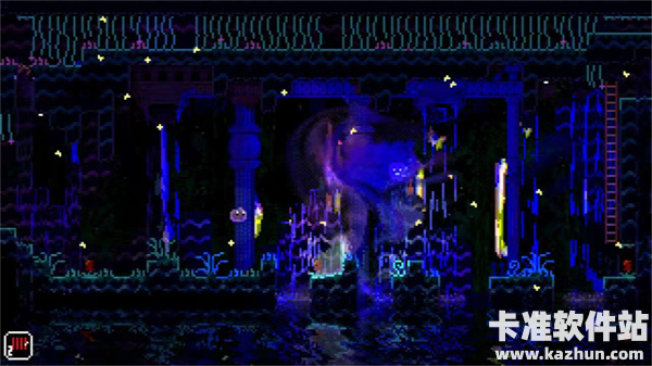 下面的房间有很多尖刺,所以小心跳到右侧的开口处,注意不要掉到尖点上。在下一个房间,沿着平台一直跳向右下角的梯子,然后往下走。不过在你离开之前,先准备好迎接Animal Well版本的Boss战。