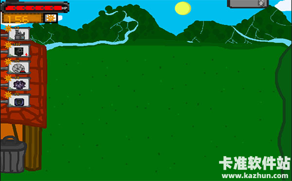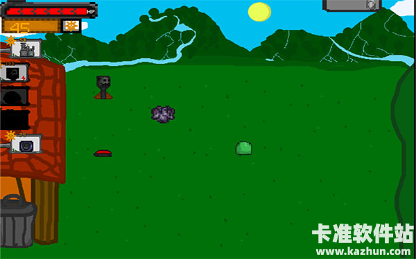 7、【玩法】将左边的武器放置到草地上,适当的安排可用材料数,防卫跳来跳去的类似史莱姆的僵尸。