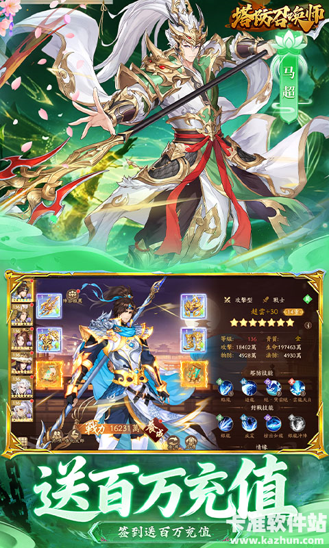 前期建议可以主要培养马超,马超是开荒利器,远程近战兼备,还有打断能够很好的推图武将是可以无损替换的,因此不用担心前期没抽到好的武将