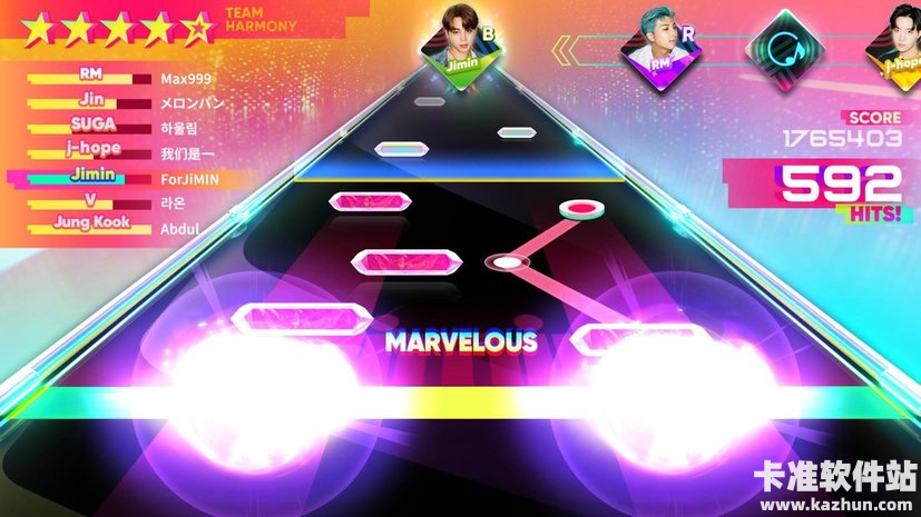 4、在游戏中玩家将能够轻松获取各种韩流男团如BTS等等的乐曲,游戏整体操作十分简单,只需要跟着音乐节奏用手指点击屏幕即可