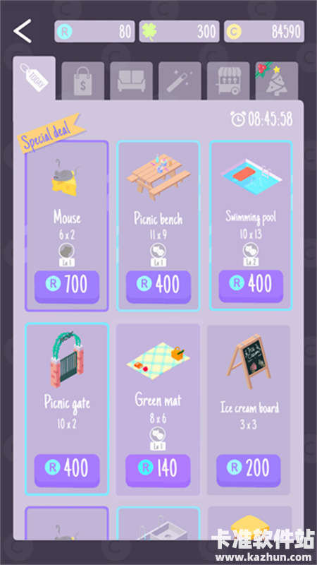 2、这个时候你需要开启随机家具盒子,有野餐垫、沙滩床、游泳池、BBQ派对烤架,备有100多种野餐家具、围栏和瓷砖。根据喜好装饰它;