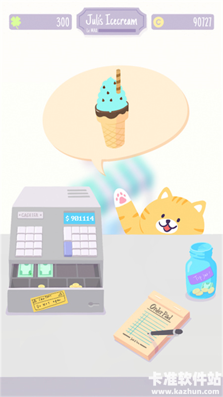 3、选择猫猫,按照它给出的订单为其制作不同口味的冰淇淋;