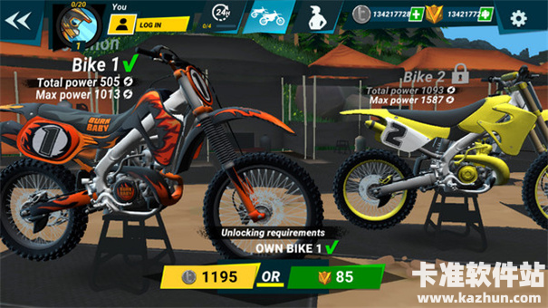 3、带领玩家在职业生涯和时间竞速两个模式之中,去体验极速刺激而且疯狂的越野摩托车竞赛。