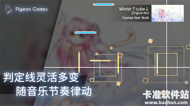2、新颖的游戏玩法,4种音符组成的无轨谱面,搭配灵活多变的判定线,带来不一样的音游体验。