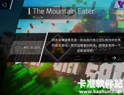 6、炫酷的谱面,优秀的音律,挑战「EZ」、「HD」、「IN」、[AT]四种不同难度的原创曲目。
